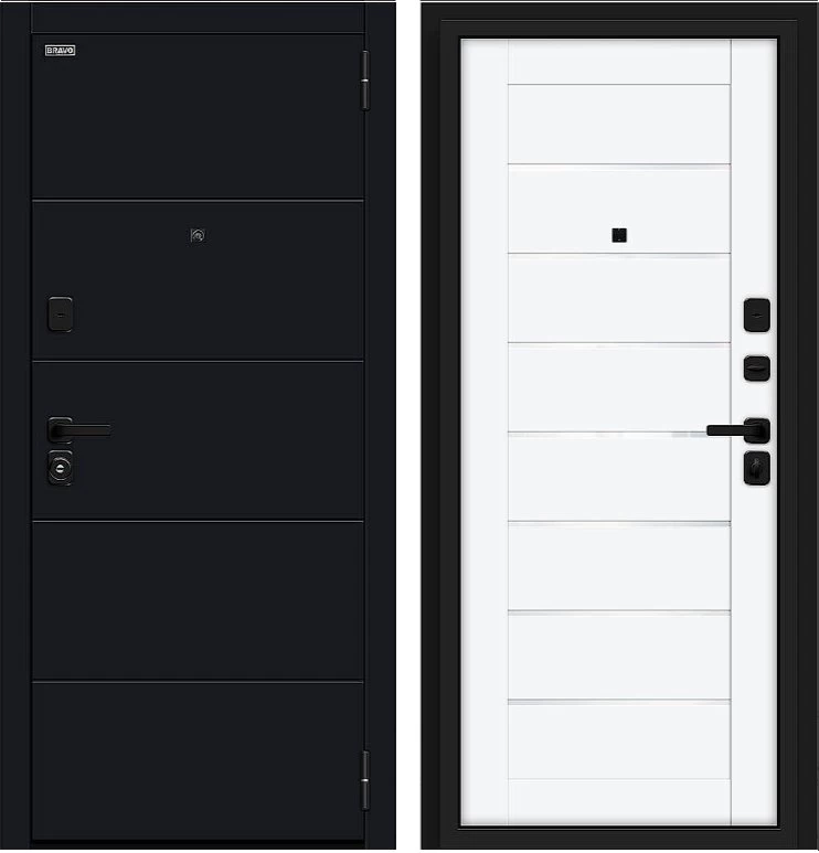 Надежная входная Дверь Браво Прайм/SBlack-Black Shell/White Silk премиум класса по цене 39 939 руб. Большая толщина стали защитит от проникновения в ваш дом, квартиру или коттедж. Используется очень качественная фурнитура: замки, цилиндры, ручки, защелки. Покрытие и отделка двери изготовлено под внимательным контролем производителя. Дверь имеет долгий срок службы и гарантию.